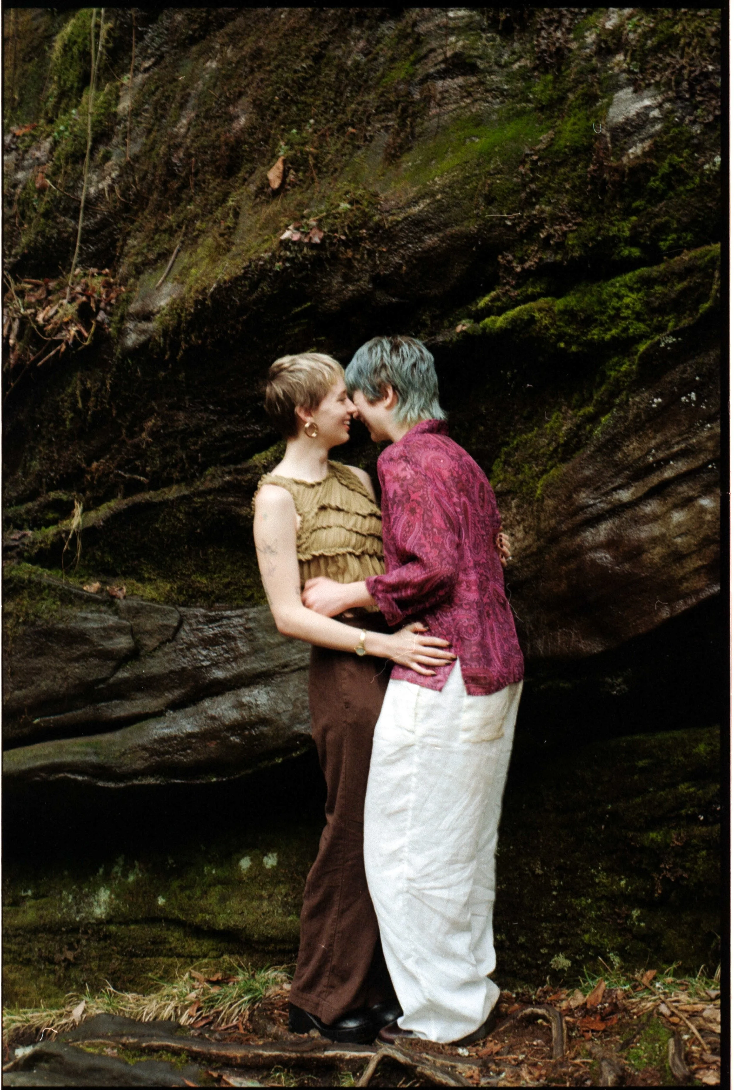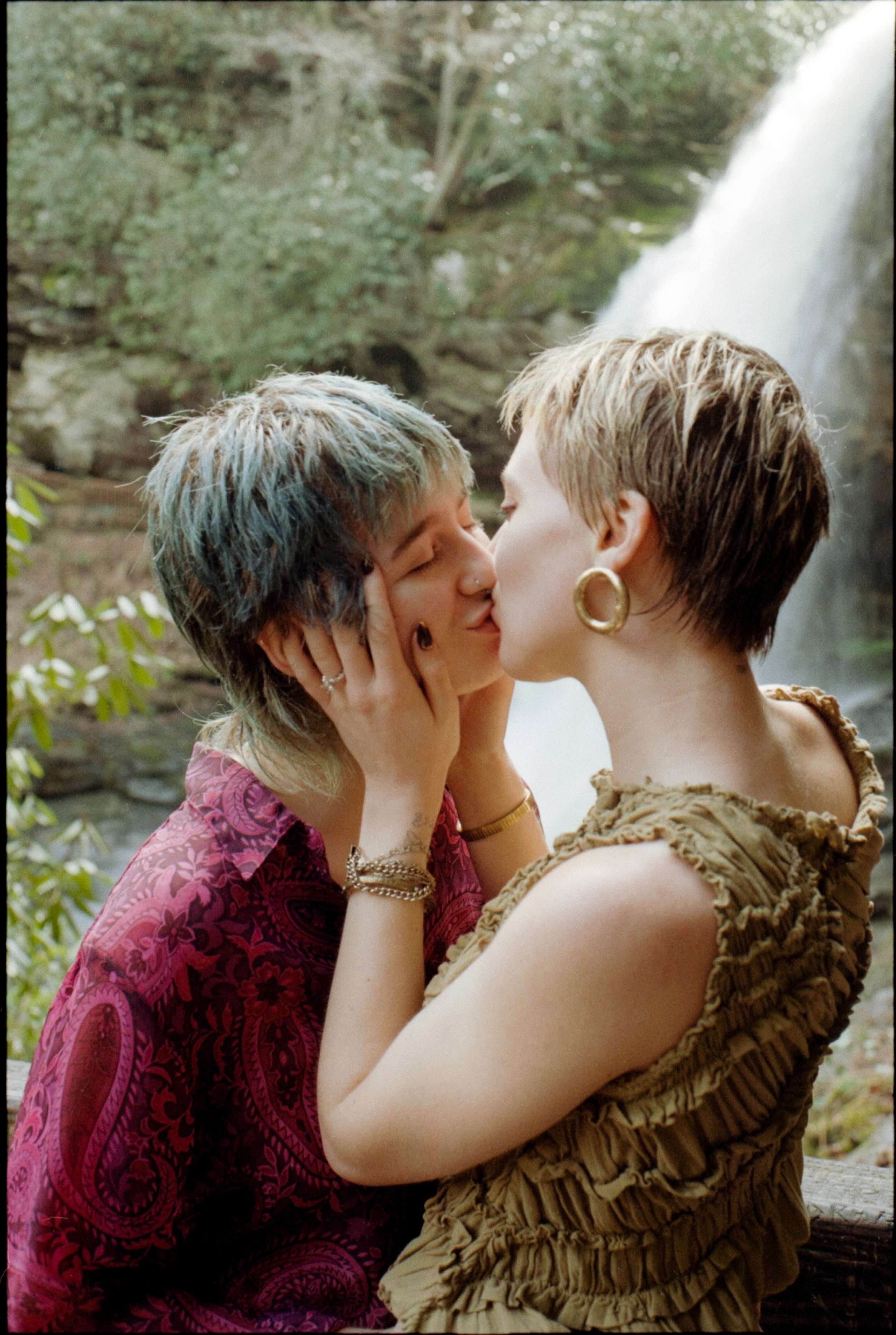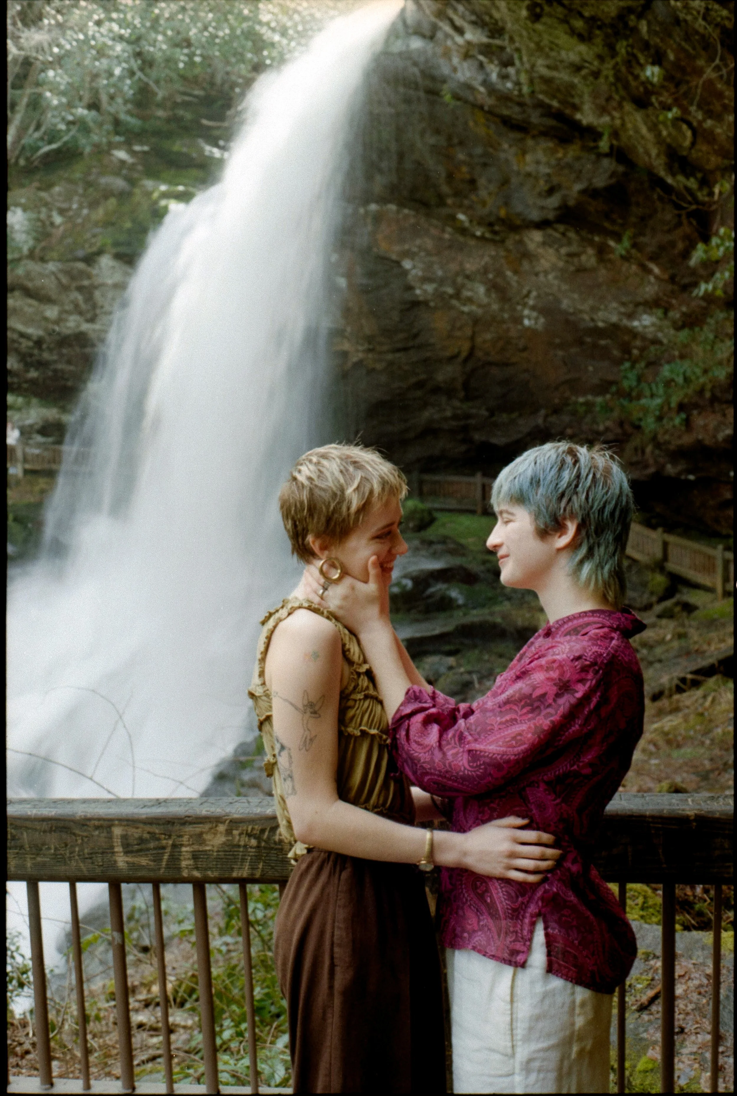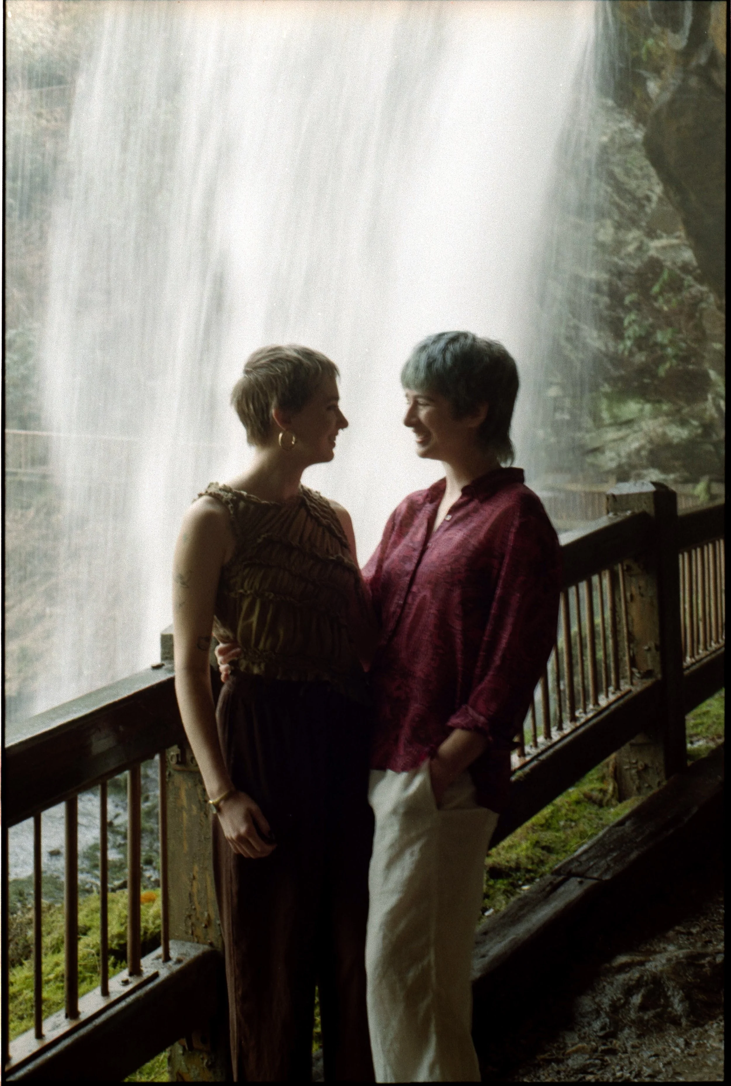 We really took the chance to lean into the environment, letting the mist from the falls settle onto our hair and playing around with the moss and rocks to add dimension. Eventually giving way to the droplets finding their way onto our faces at any given moment. You’d see a drop land, followed by laughter right after. Connection and authenticity are at the heart of what I believe in as a photographer, so I like to allow space for the nature of their relationship shape the session. With their spunky hair, they truly embodied the picture of a “fairy,” and I loved every little detail about it.