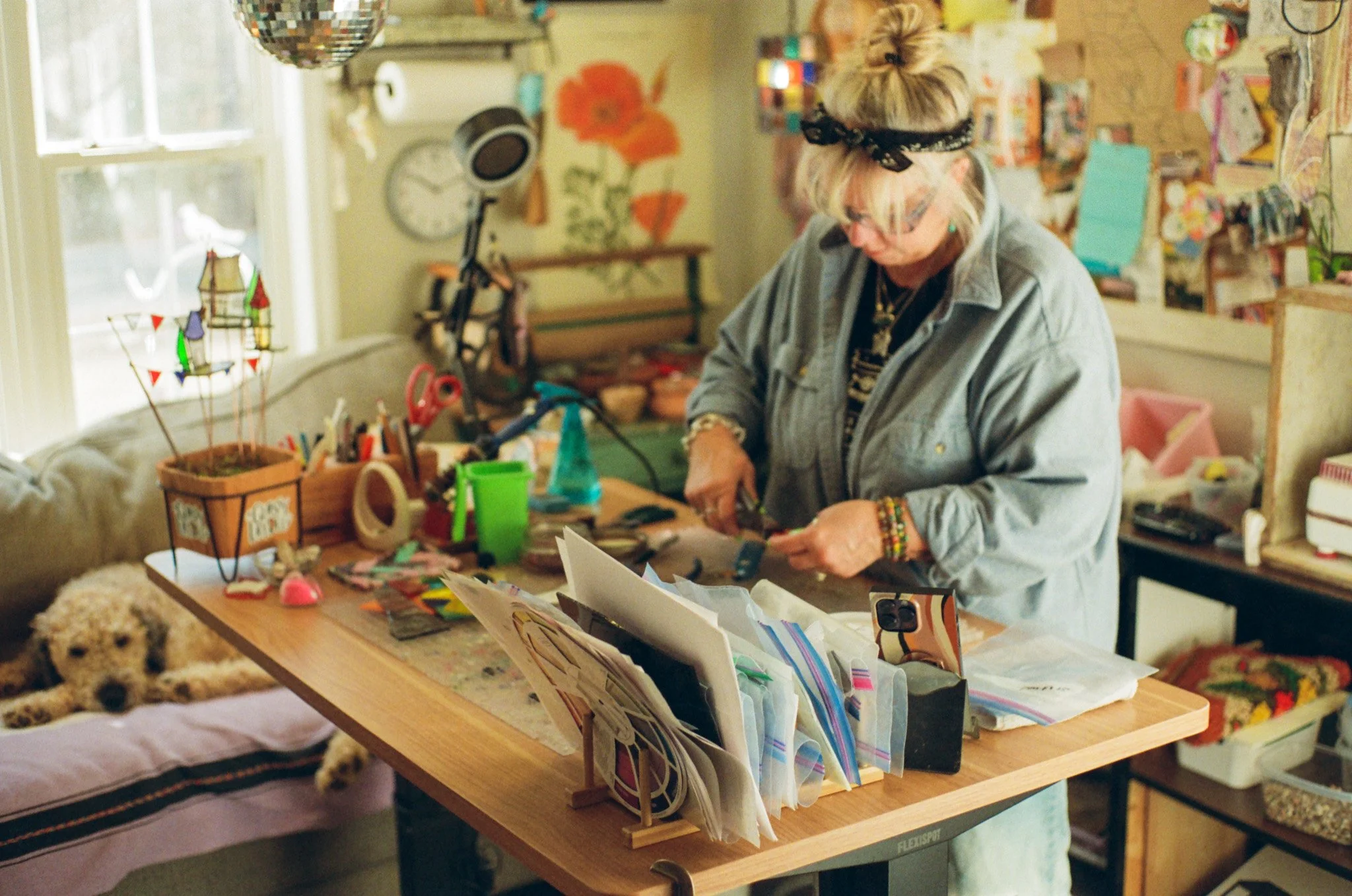 Accompanied by her favorite work companion: Nellie, who gave her opinion when needed otherwise, taking a rest on the comfy couch.