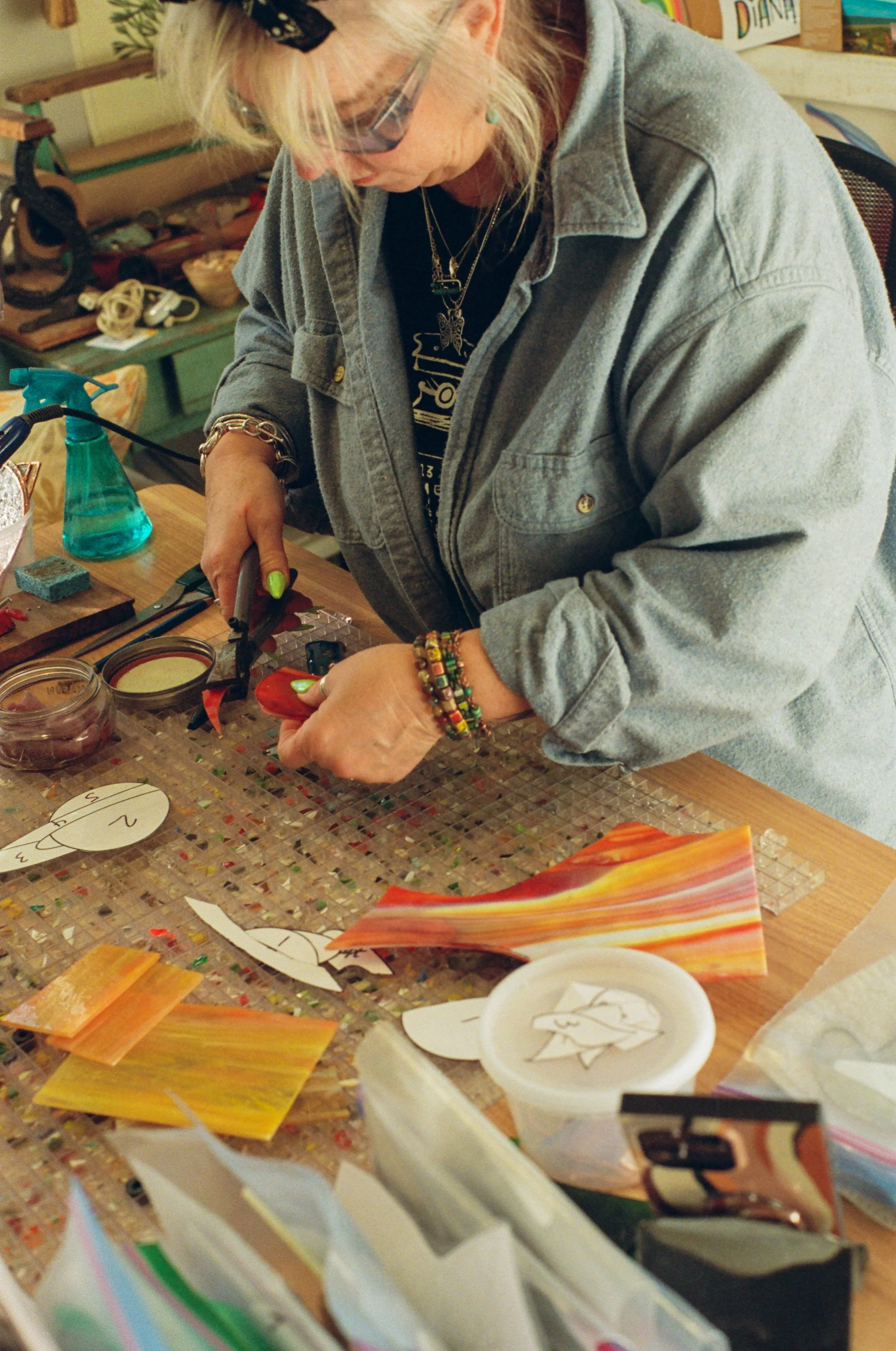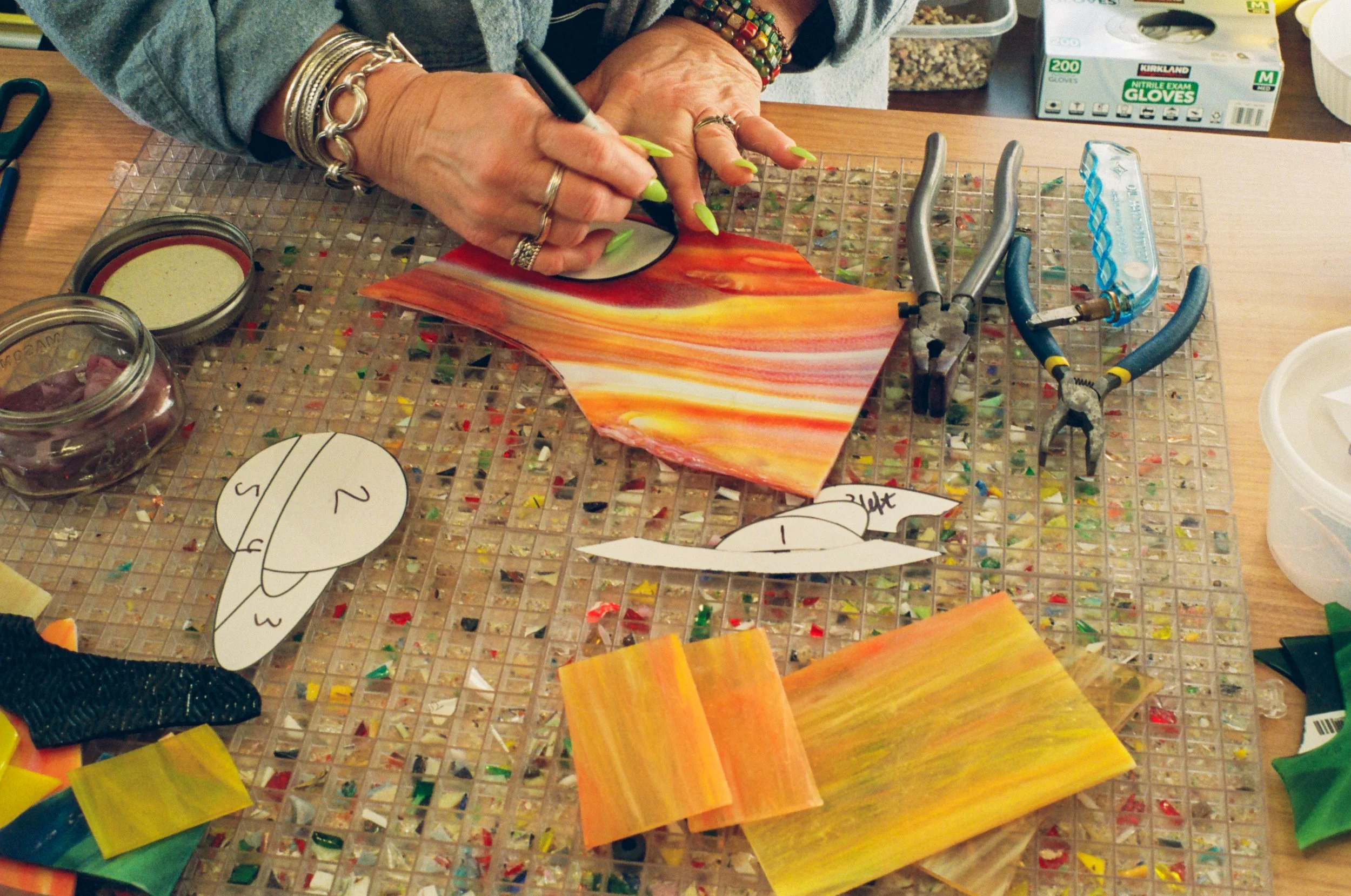 She welcomed me into her home with open arms, allowing me to see the behind the scenes of a day in the stained glass life. Choosing the subject of our project was quite easy— the most beautiful planet: Saturn. Fascinated by the complexity of this gas giant and its beautiful rings, the astrologer in me was excited to be apart of this endeavor.